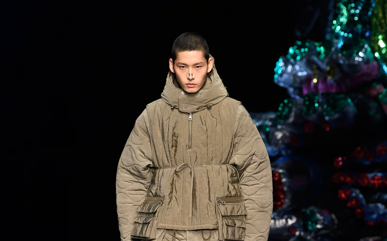 - パネル切り替えのアウタートレンチコートやレザージャケット、ダウンウェアに至るまで、彼らは常に「再構築」を試みます。パーツごとに異なる色や素材を配置するパネル切り替えは、身体のラインをダイナミックに見せ、都会の風景の中で圧倒的な存在感を放ちます。