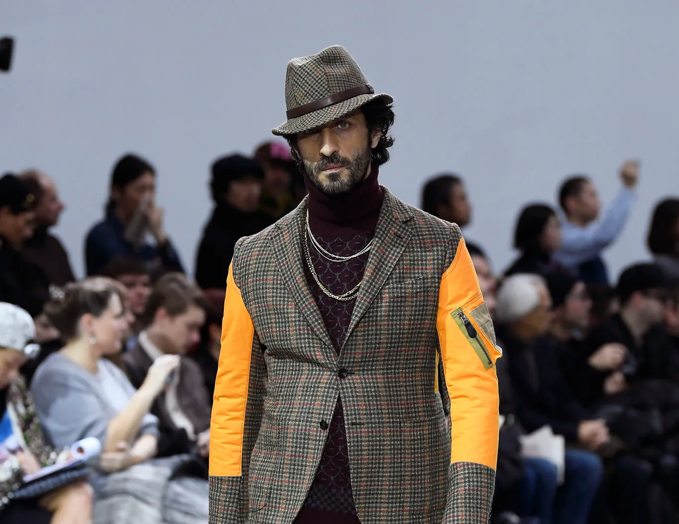 • ゴアテックス(GORE-TEX)との共演アウトドア素材の代名詞であるゴアテックスを、彼はテーラードジャケットやコートに惜しみなく投入します。雨を弾き、蒸れを防ぐという極めて実用的な機能を、洗練された都市生活者のためのスタイルへと変換する。これは、ヘルムート・ラングがかつてナイロン素材で行った革命を、より実用的な次元で完成させたものと言えるでしょう。